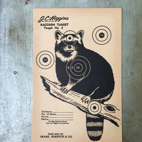 Vintage J C Higgins Raccoon Target Paper Target No 3 Etsy
