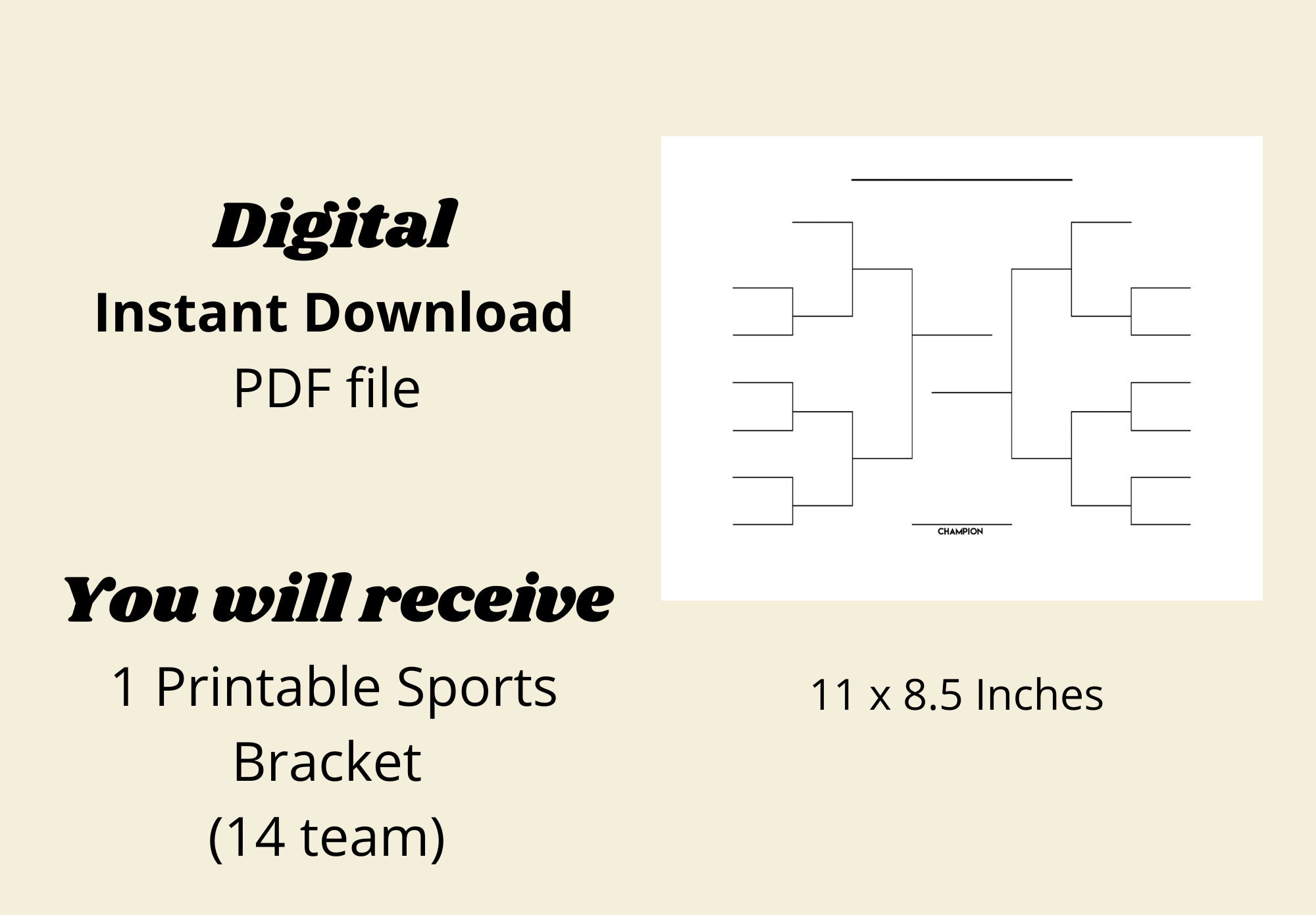 14 Team Tournament Bracket Sports Bracket Printable Sports Etsy
